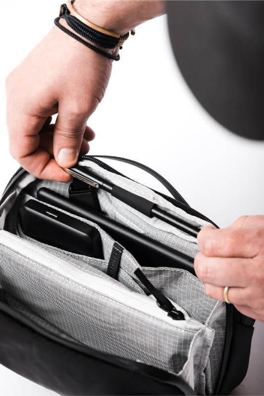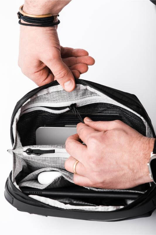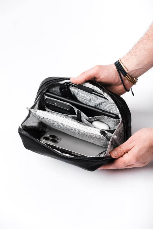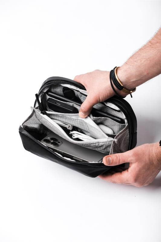 Why settle for one bag when you can have two? This master of transformation is your ultra-organized tech pouch one moment and your sleek. comfortable sling the next. Stash it neatly inside the Travel35 or Pro25 for effortless packing. then deploy it when you reach your destination. With 12 intelligently placed pockets. a tablet sleeve. and an adjustable strap. it ensures everything you need is right where it should be—easy to find and even easier to carry. Built from weather-resistant ballistic nylon with a breathable padded back panel. it’s ready for whatever the journey throws your way.