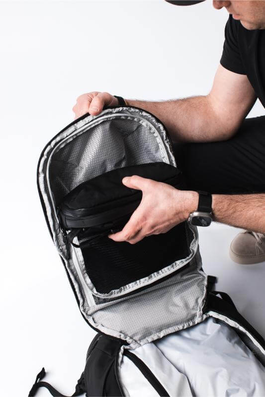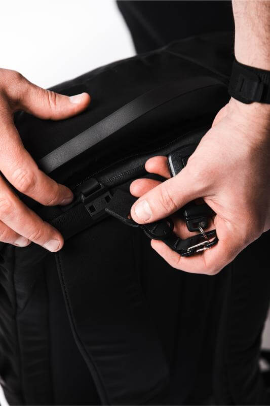 Your ultimate travel co-pilot – spacious. versatile. and built to move. Designed to function like a suitcase. backpack. and command center in one. this pack keeps everything in its place without slowing you down. A modular design seamlessly integrates with the TechSling and RollTop15 for a fully customized setup. while multiple compartments ensure your laptop. passport. and gear are exactly where you need them. With a breathable back panel. padded straps. and ultra-durable ballistic nylon. it’s built to handle rough roads. red-eye flights. and everything in between. Wherever you’re headed. this bag makes travel effortless.